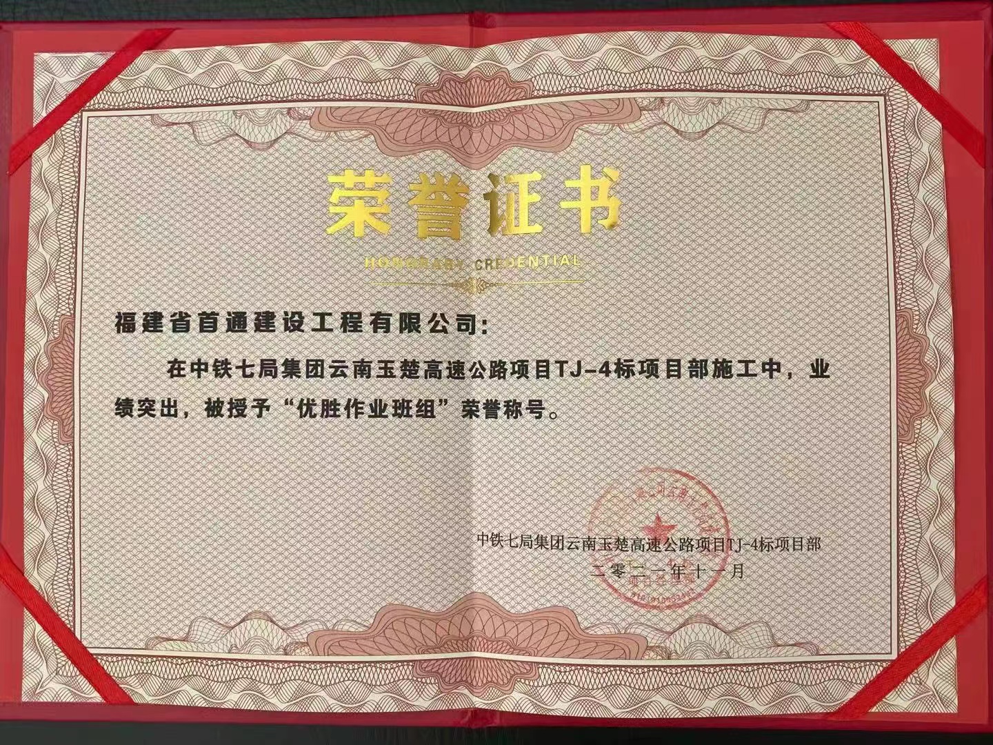 自2019年4月进洞施工以来,玉楚高速项目贯彻了统筹规划、重点突破、难点攻克、倒排工期等项目管理理念。在地理条件差、任务艰巨、工期紧凑等因素影响下,我司项目部全体参建员工严格按照施工任务要求,步步为营、循序渐进,实现了进度、安全及质量的全面提升,保障了隧洞顺利贯通,得到了总承包单位的高度认可,获得“优胜作业班组”的荣誉称号。