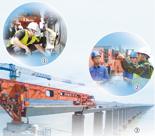图③: 福厦铁路湄洲湾跨海大桥建设现场,“昆仑号”在架设该线路最后一孔40米箱梁。