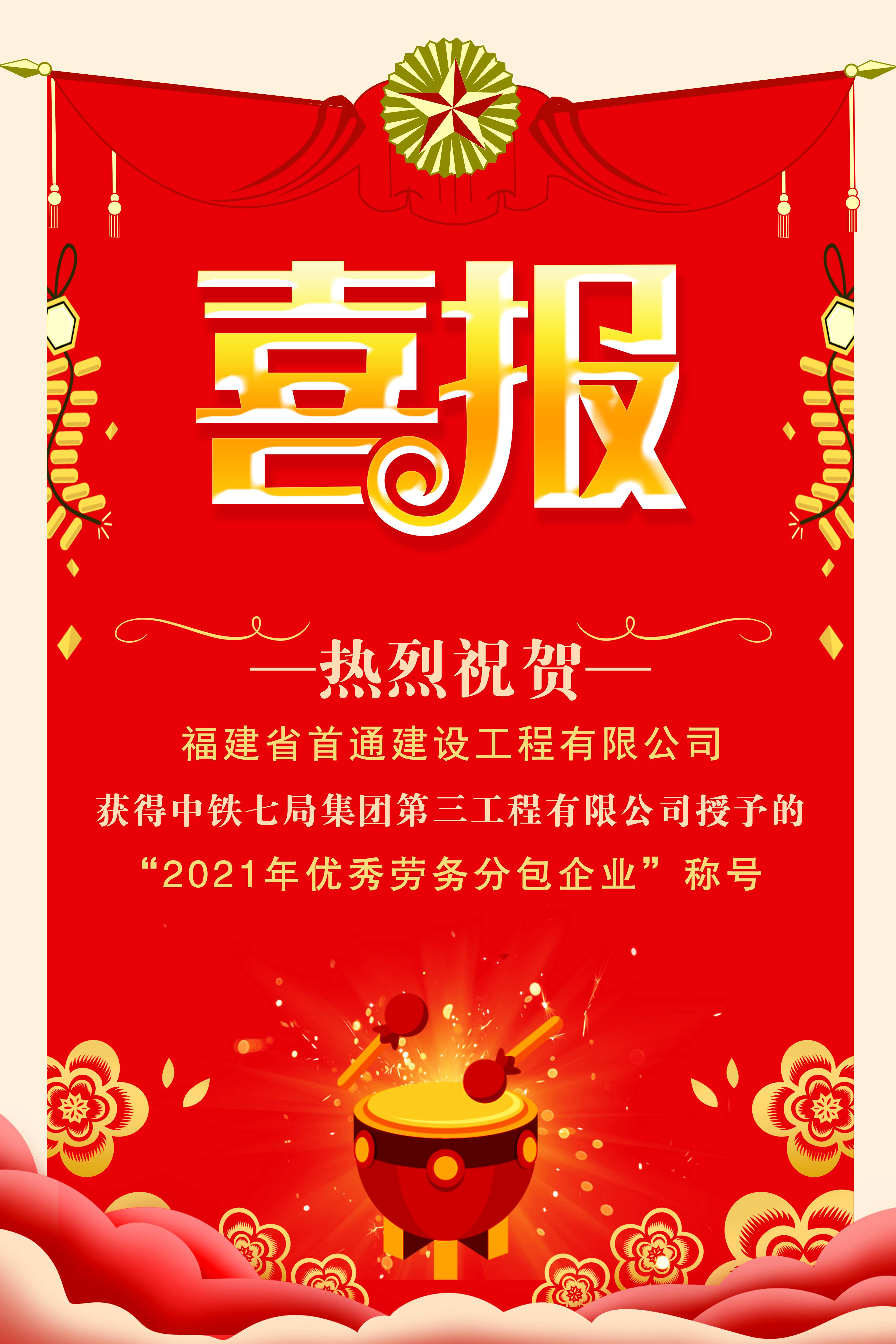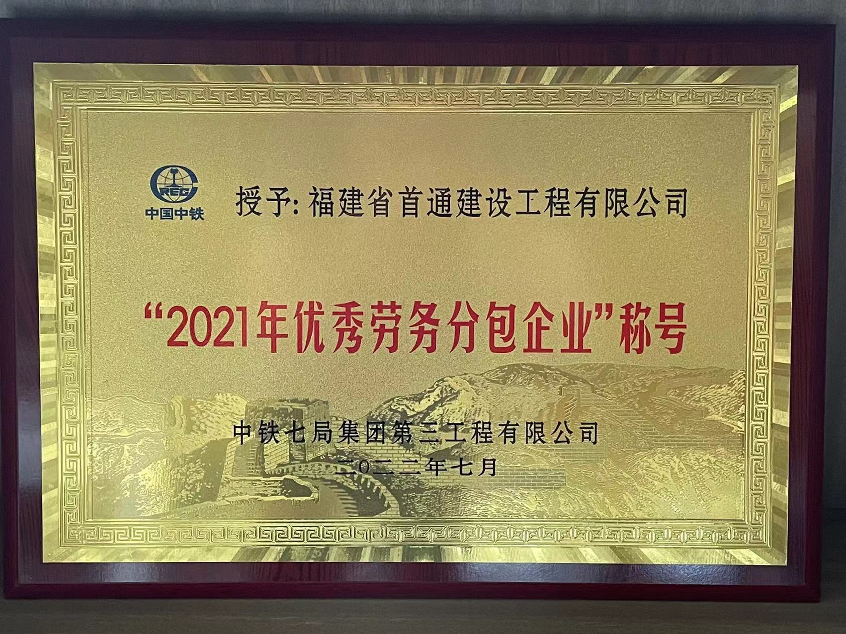 喜讯!热烈祝贺我司获得“2021年优秀劳务分包企业”称号